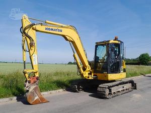 Weight: 7000, Used Komatsu 8 tonne 0 tail swing Mini digger on 450mm rubber block pads, fitted with Komastu by Yanmar engine, CE marked, EPA sticker, Full cab, Hydraulic quick hitch, Hammer [&] rotate Hydraulic lines, Blade [&] Offset Boom., Condition: used