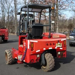 2005 MOFFETT M50 PIGGYBACK FORKLIFT; 2.5 TON; 5000 LB MAX CAP; 45'' FORKS W/ 45'' SPREAD; 120'' LIFT HEIGHT; 100'' MAST HEIGHT; 32'' FORK TELESCOPE; 5'' FORK SIDESHIFT; KUBOTA 4 CYL DIESEL ENG; 3 WHEEL HYDROSTATIC DRIVE; TIRES: 29X12.5-15. 1,317 HOURS.