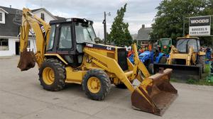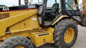1993 CAT 436B Turbo loader-backhoe with an 84 HP diesel engine, 4 wheel drive, front tire size 12.5/80-18, rear tire size 19.5Lx24, and a power shift transmission with a shuttle left-hand reverser. This machine has an 86" material bucket, a 21" digging bucket, extend-a-hoe, R-4 tires, and a 16'3" digging depth. The cab has heat and AC. It is clean and runs well. 1,778 metered hours. Serial number 6MJ00420.